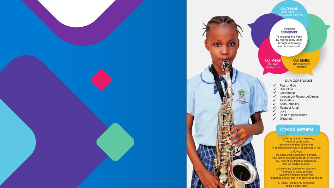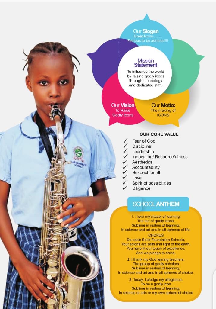 De-Oasis Solid Foundation Schools came into existence on Monday 18th September, 2017 with the aim of raising ICONS who will be famous to be admired; making distinctions in all they do. Going by this name and brand, an OASIS is a fertile spot in the desert, where water is found. It also means something that provides refuge, relief, or pleasantries. An ICON is a person or thing regarded as a representative symbol or as worthy of veneration; a very famous person or thing representing a set of beliefs or a way of life. It is a person who is very successful and admired.